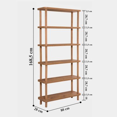 Raamaturiiul naturaalset värvi männidekorist 80x168,5 cm Step - Kalune Design