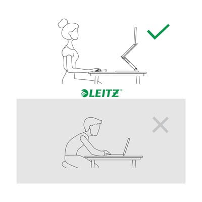 Ergonoomiline sülearvuti statiiv Leitz tagab maksimaalse mugavuse töö juures.