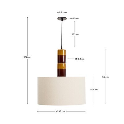 Kave Home Mavrani ripplamp avaldab muljet oma ainulaadse disainiga. Selle alus on valmistatud glasuuritud keraamikast, mille triibud lisavad tervikule dünaamilisust ja isikupära. Lambi õhuke, vertikaalne kuju on elegantne ning puuvillane vari tagab meeldiva valguse filtreerimise. See loob pehme ja ümbritseva atmosfääri, mis sobib ideaalselt elutuppa, magamistuppa või lugemisnurka. Juhe on kaetud eriti pehme kangaga, mis lisab elegantsi ja meeldivat puudutust. Lamp ühildub E27 pirnidega maksimaalse võimsusega 40W. Pirn ei kuulu komplekti.