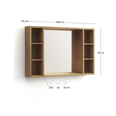 Rippuv tiikpuidust vannitoakapp koos peegliga 100x65 cm Parana - Kave Home