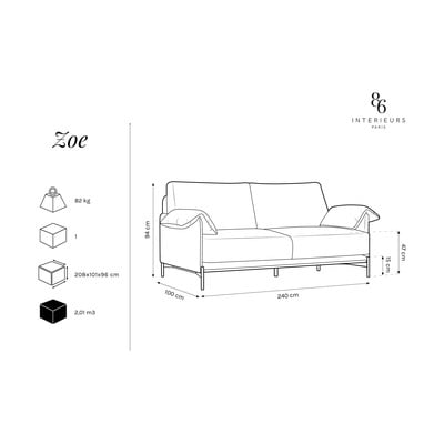 Hellitage end elegantsuse ja mugavusega Interieurs 86 diivanitega Zoe. Peenike disain täiendab ja ühtlustab interjööri moodsas stiilis. Diivan on valmistatud tihedalt kootud kangast, mis on meeldiva puudutusega. See on väga vastupidav hõõrdumisele, mis vähendab oluliselt kahjustuste ohtu. Kaitsekiht takistab mustuse sissetungimist ja vedelike imendumist. Seega saab lekked eemaldada ilma puhastusvahendeid kasutamata.