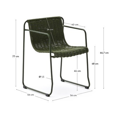 Kave Home Maurina tooli disaini lõi Yonoh Studio eksklusiivselt Kave Homele. Iste ja seljatugi on valmistatud käsitsi kootud UV-kindlast nöörist, mis tagab tooli pikaealisuse isegi sagedasel õues kasutamisel.