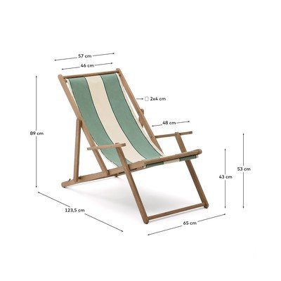 Kave Home kokkupandav käetugedega Vilara aiatool on ideaalne valik õues lõõgastumiseks. Selle triibuline kangas on loodud maksimaalse vastupidavuse ja hõlpsa hoolduse tagamiseks - see on antibakteriaalne, kiiresti kuivav, vetthülgav ja UV-kindel.