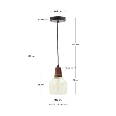 Kave Home Silex rippvalgusti ühendab endas rohelise klaasi elegantsi ja pähklipuu soojuse. 13 cm läbimõõduga lamp sobib E27 sokliga pirnidele, mille maksimaalne võimsus on 40 W. Pirn ei kuulu komplekti.