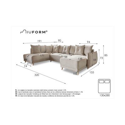Hall velvetist nurgadiivanvoodi (vasak nurk/"U") Lazy Lukka - Miuform