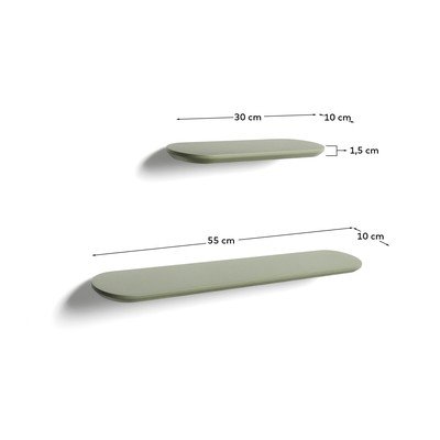 Kave Home Arely riiulid on osa disainer Nahtrangi loodud kollektsioonist. See kahest riiulist koosnev komplekt iseloomustab peeneid jooni ja hoolikalt viimistletud detaile, mis lisavad teie ruumile funktsionaalsust ja stiili.