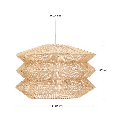 Kave Home Dakit ripplamp loob teie interjööri meeldiva atmosfääri. Lambivarju on käsitsi punutud rotangist, mis annab sellele ainulaadse kuju ja kihilise, akordionilaadse välimuse. Lamp mitte ainult ei valgusta ruumi, vaid on ka stiilne aksessuaar. Pange tähele, et lambipesa ja pirn ei kuulu komplekti.