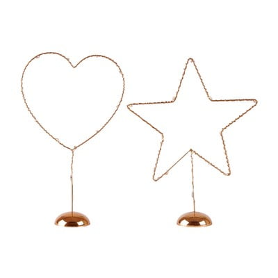 Sada 2 LED světelných dekorací na stojánku v měděné barvě KJ Collection, 22,5 cm