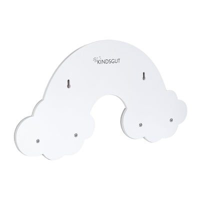 Kaunista oma lapse toa seinad dekoratiivse ja praktilise Kindsgut seinakinnitusega, mis on värvilise vikerkaare ja pahempidi kujuga. See on valmistatud puidust ja pakub ruumi riiete või kohvrite riputamiseks neljale konksule.