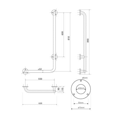 Seinale paigaldatav roostevabast terasest vannitoa käepide 63 cm Handicap Right - Sapho
