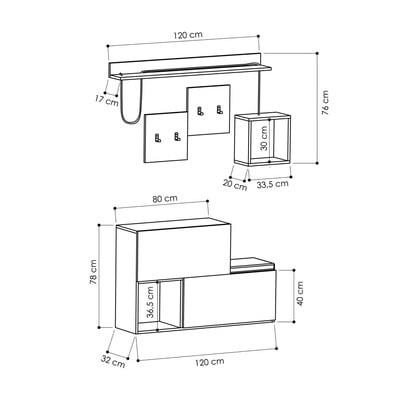 Set tmavě šedého botníku / lavice a nástěnného věšáku s policí Homitis Holdon
