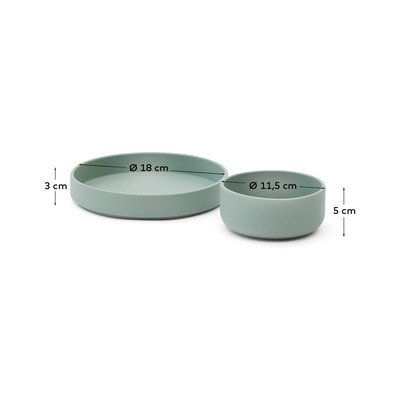 Kave Home laste õhtusöögikomplekt Lili on disainitud just pisikesi silmas pidades. See on valmistatud silikoonist, mis teeb sellest praktilise abilise, mis muudab laste söögiajad nauditavamaks ja vanemate jaoks söötmise lihtsamaks. Komplekt sisaldab kahte osa - ühte lamedat taldrikut ja ühte kaussi.