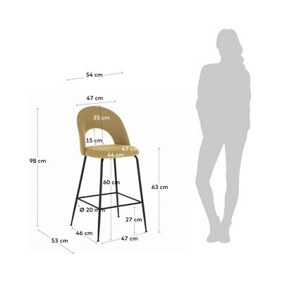 Sinepivärvi baaritoolid 4 tk komplektis (istme kõrgus 63 cm) Mahalia - Kave Home