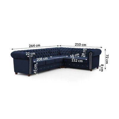 Sinine sametist nurgadiivanvoodi (parem nurk/L-kujuline) York Blik - Ropez