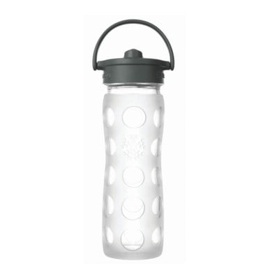 Skleněná lahev na vodu se silikonovým brčkem a chráničem Lifefactory Transparent, 475 ml