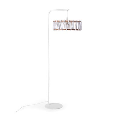 Stojací lampa s bílou konstrukcí a velkým bílým stínidlem EMKO Macaron