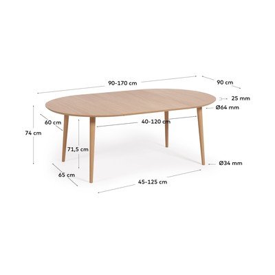 Tammedekooriga ümmargune kokkupandav söögilaud ø 90 cm Oqui - Kave Home