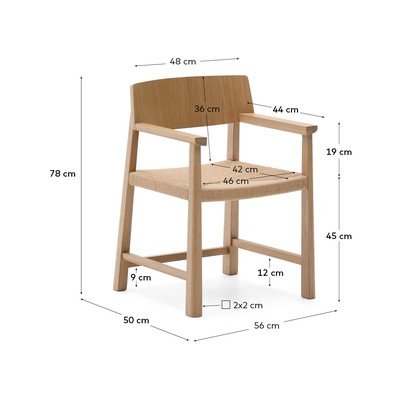 Iste on valmistatud nöörist ja disainile kuuluvad ka mugavad käetoed. Tooli disain on detailideni läbi mõeldud - sellel on mugavuse tagamiseks kumer seljatugi ja vastupidav konstruktsioon nurga all olevate jalgadega, mis tagavad maksimaalse stabiilsuse.