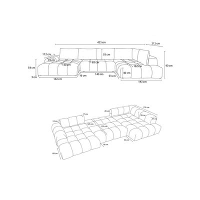 Taupe šenilldiivanvoodi/panipaigaga nurgadiivan (parempoolne/U-kujuline) Everest - Bobochic Paris
