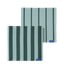 Triibulised värvilised riidest salvrätikud valgustavad iga kööki. Need on kaheses komplektist, millel mõlemal on erinev triibumuster - ühel on julged laiad triibud ja teisel peenikesed kitsad triibud. Dünaamilist disaini täiendab ikooniline keerdunud muster ja kontrastne sinine silt. Optimaalse imavuse saavutamiseks soovitame enne esimest pesu 24 tundi külmas vees leotada salvrätikuid.