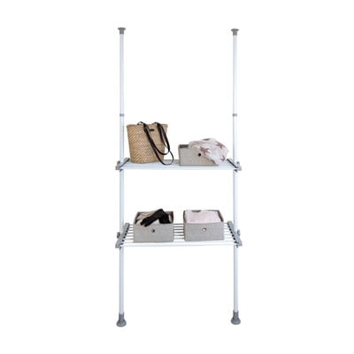 Värvitud metalltorudest valmistatud reguleeritava laiusega riiul.