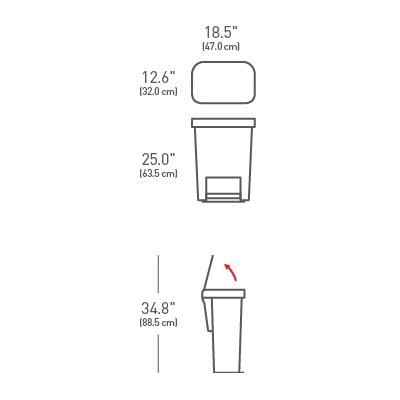 Tänu jalapedaaliga juhtimisele on prügi kõrvaldamine kiire, tõhus ja väga hügieeniline. Lai teraspedaal on loodud kestma aastaid ja patenteeritud Shox-tehnoloogia tagab, et kaas sulgub alati sujuvalt ja vaikselt.