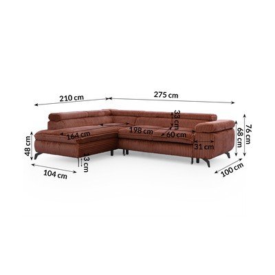Terrakota värvi velvetist nurgadiivan (vasak nurk/L-kujuline) Marbeya - Ropez