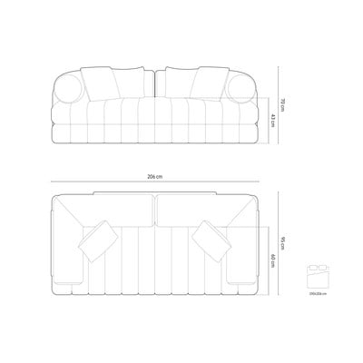 Beež sametist lahtikäiv diivan 206 cm Kemi – Cosmopolitan Design