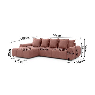 Terrakottapunane nurgadiivan (vasak nurk) Albane - Ropez
