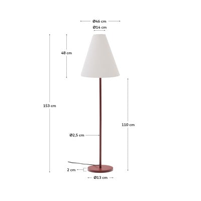 Kave Home Navat põrandalamp toob interjööri elegantse, kuid minimalistliku stiili. Lamp on valmistatud terrakota viimistlusega metallist ja seda täiendab koonusekujuline valge kangast vari. Põrandalamp ühildub E27 pirniga, mille maksimaalne võimsus on 40 W. Pirn ei kuulu komplekti.