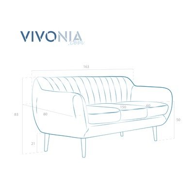 Tmavě hnědá pohovka se světlými nohami Vivonita Kennet, 163 cm
