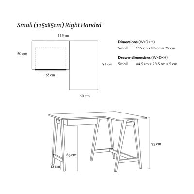 Luka kirjutuslaud on varustatud sahtliga, mille mõõtmed on 44,5 x 28,5 x 5 cm. Tänu sellele on teil kõik käepärast ja samal ajal avar töökeskkond.