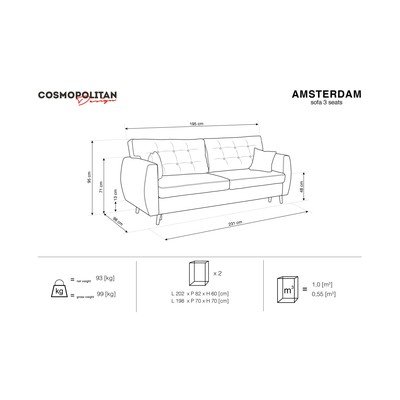 Trojmístná rozkládací pohovka s úložným prostorem ve stříbrné barvě Cosmopolitan Design Amsterdam