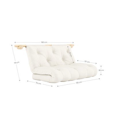 Diivanvoodi on varustatud nelja seinaklambriga, mis hoiavad seda kindlalt paigal, võimaldades samal ajal toimida ruumis dekoratiivse elemendina. Istumiseks viige tool lihtsalt madalamasse asendisse. Kui vajate magamiskohta, laotage madrats lihtsalt põrandale laiali. Kronsteine ​​saab paigaldada erinevatesse ruumidesse, võimaldades tooli vastavalt vajadusele liigutada. Disainlatt on 180 cm lai.