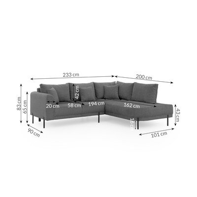 Tumehall šenillist nurgadiivan (parempoolne/L-kujuline) Mauris - Ropez