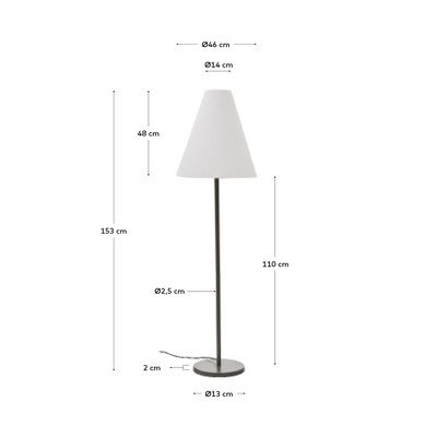 Kave Home Navat põrandalamp toob interjööri elegantse, kuid minimalistliku stiili. Lamp on valmistatud tumerohelise viimistlusega metallist ja seda täiendab koonusekujuline valge kangast vari. Põrandalamp ühildub E27 pirniga, mille maksimaalne võimsus on 40 W. Pirn ei kuulu komplekti.