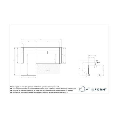 Tumeroheline velvetist diivanvoodi (paremas nurgas) Lofty Lilly - Miuform