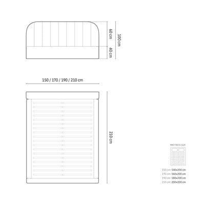 Hall polsterdatud kaheinimesevoodi, koos panipaiga ja restiga 180x200 cm Juno – Windsor & Co Sofas
