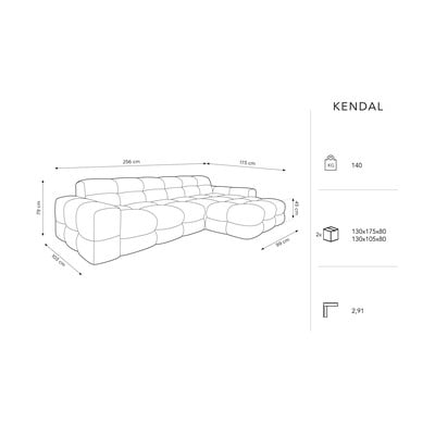 Nautige Kendali diivani moodsat disaini. Pind on pehme ja meeldiva puudutusega tänu sametkangale. Samuti on kudum väga vastupidav. See teeb diivanist suurepärase valiku lemmikloomaomanikele.