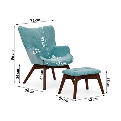 Türkiissinine velvetist tugitool koos jalatoega Niko - Ropez