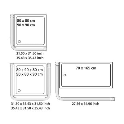 - mõõtmetega 80 x 80 cm või 90 x 90 cm või 70 x 165 cm.