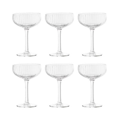 Bloomingville'i kuuest Astrid šampanjaklaasist koosnev komplekt kaunistab iga pidustust. Õrna sakilise serva ja elegantse kujuga klaasid toovad esile teie lemmikvahuveini maitse.