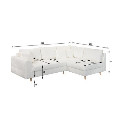 Valge bukleekangast nurgadiivan (parem nurk) Ariella - Ropez