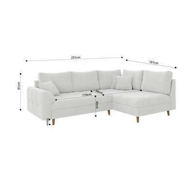 Valge bukleekangast nurgadiivan (parem nurk) Ariella - Ropez