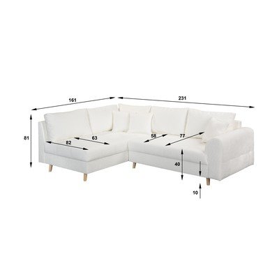 Valge bukleekangast nurgadiivan (vasak nurk) Ariella - Ropez