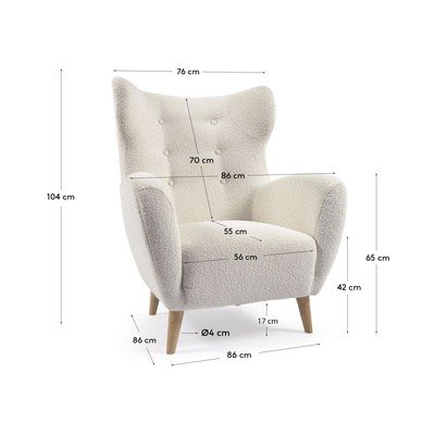 Kave Home terrassitool toob teie interjööri retrohõngu, mis on inspireeritud 1960. aastate disainist. Selle kõrge tiibadega seljatoe on kaunistatud dekoratiivsete nööpidega, mis loovad tepitud ilme. Tugitool on polsterdatud buklee-kangaga, mis annab sellele meeldiva tekstuuri. Tugevad pöögipuidust jalad tagavad stabiilsuse.
