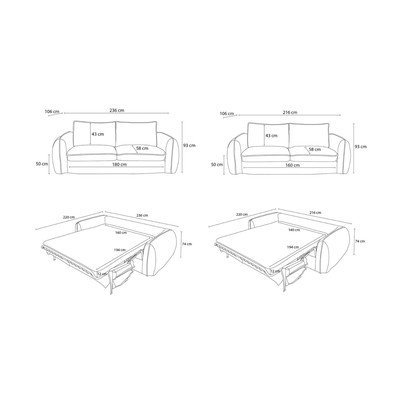 Valge diivan igapäevaseks magamiseks/kokkupandav voodi 236 cm Archimede - Bobochic Paris