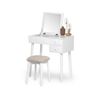 Väga ilus riietuslaud koos väikese jalakaga, mis on elegantse ja maitseküllase välimusega.
