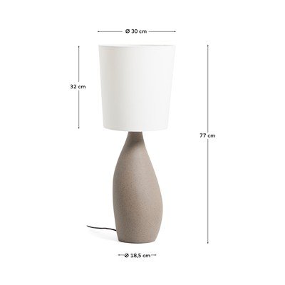 Kave Home Viona laualamp ühendab endas kivitekstuuriga aluse ja puuvillase varju. Selle vastupidav, orgaanilise kujuga alus annab lampile iseloomu ja individuaalsuse. Kooniline vari pehmendab valgust ja loob igas ruumis sooja ja hubase atmosfääri. Tänu tasakaalustatud disainile integreerub lamp hõlpsasti magamistuppa, elutuppa või tööruumi, andes neile erilise ja ajatu ilme. Lamp ühildub kuni 40W E27 pirnidega, mida müüakse eraldi. See on funktsionaalne ja dekoratiivne lamp, mis on loodud teie kodu atmosfääri muutmiseks ainulaadsete detailide ja hoolikalt valitud materjalide abil.