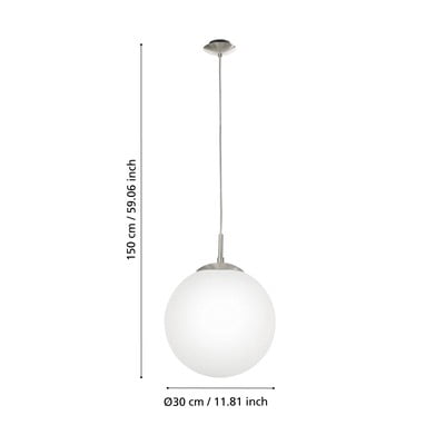 Valge-hõbedane rippvalgusti klaasist varjuga ø 30 cm RONDO - EGLO